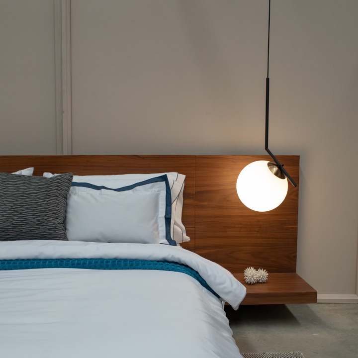 Lámpara de techo colgante, fabricada en metal, vidrio y pintura electrostática. Incluye bombillo LED y cable de 1,30 metros. Ideal para espacios como habitaciones o salas. Nuestra promesa de entrega es de 5 días hábiles. Disponible en acabado negro.