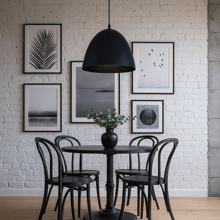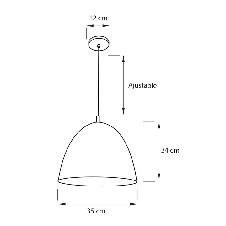 Lámpara de techo colgante, fabricada en metal y pintura electrostática. Incluye bombillo LED y cable de 1.30 metros. Ideal para espacios como comedores o cocinas. Nuestra promesa de entrega es de 15 días hábiles.