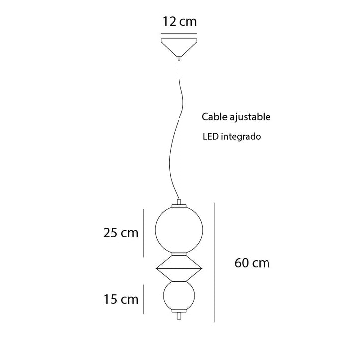 Lámpara de techo colgante, fabricada en metal, vidrio y pintura electrostática. LED integrado en temperatura cálida y cable de 1,30 metros. Ideal para espacios como habitaciones, salas o comedores. Nuestra promesa de entrega es de 15 días hábiles.