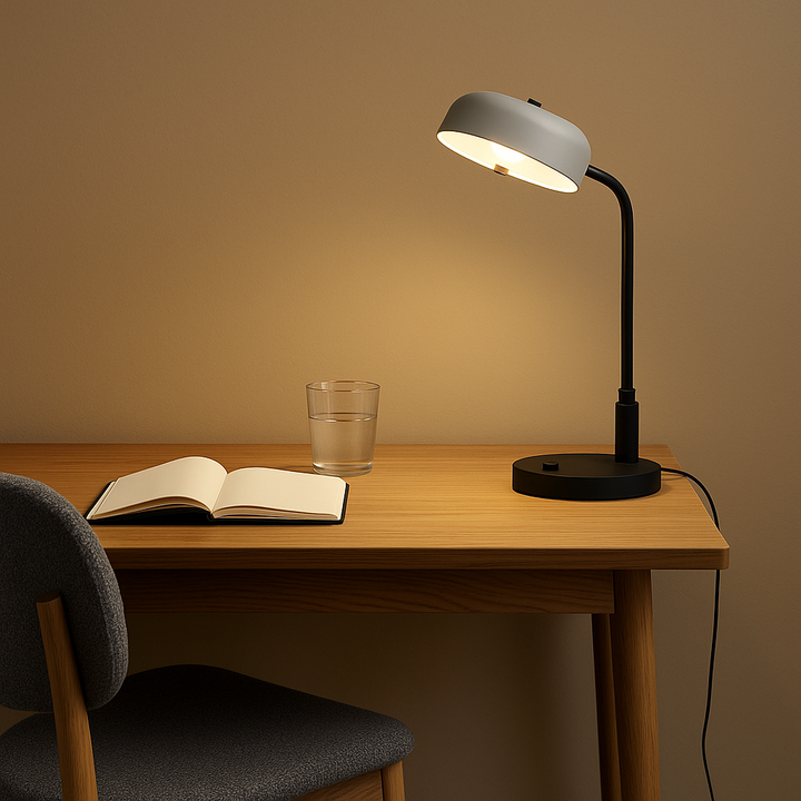 La lámpara Sapporo de mesa pequeña combina un estilo moderno con una iluminación cálida y precisa, perfecta para acompañarte en momentos de lectura o trabajo. Su estructura en color negro y pantalla superior en tono macadamia crean un contraste elegante que se adapta a cualquier espacio. Entrega: en 5 días hábiles.