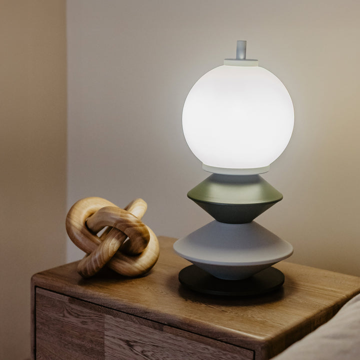 Lámpara de mesa, fabricada en metal, vidrio y pintura electrostática. LED integrado en temperatura cálida y cable de 1,30 metros. Ideal para espacios como habitaciones o salas. Nuestra promesa de entrega es de 15 días hábiles.