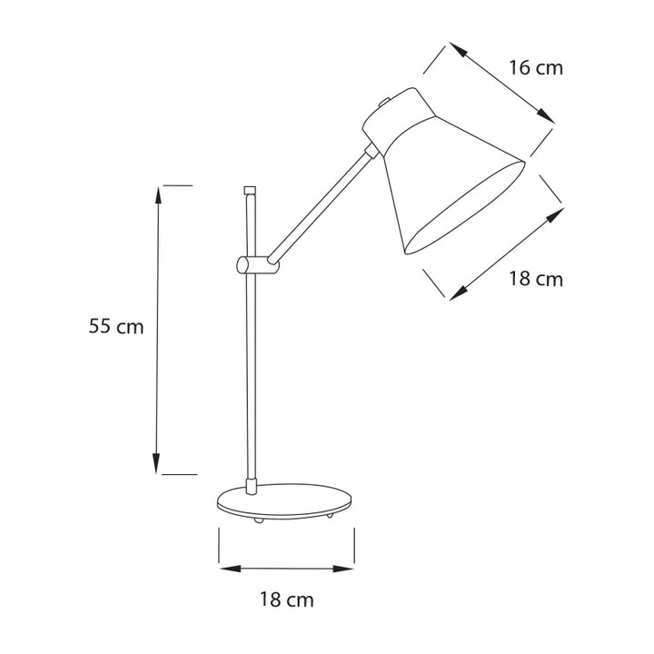 Lámpara de mesa, fabricada en metal y pintura electrostática. Incluye bombillo LED. Ideal para espacios como habitaciones o estudios. Nuestra promesa de entrega es de 5 días hábiles. Disponible en acabado macadamia.