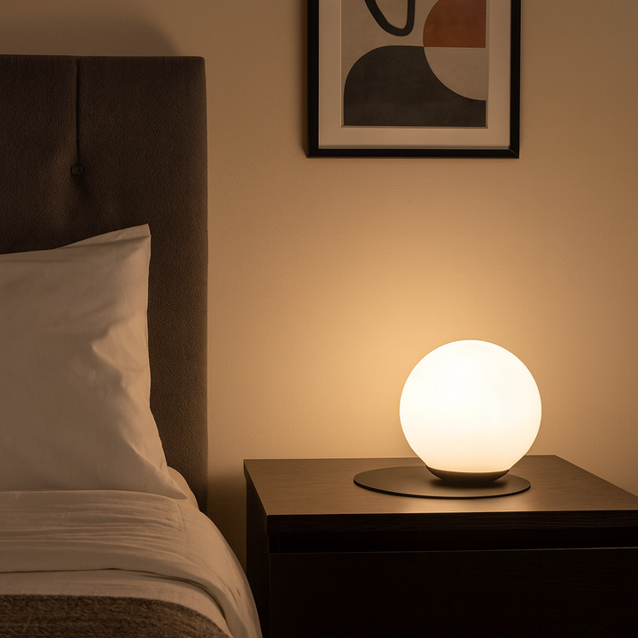 Lámpara de mesa, fabricada en metal, vidrio y pintura electrostática. Incluye bombillo LED. Ideal para espacios como salas, estudios o habitaciones. Nuestra promesa de entrega es de 15 días hábiles.