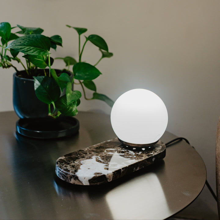 Lámpara de mesa, fabricada en piedra natural (mármol). Incluye bombillo LED. Ideal para espacios como salas, estudios o habitaciones. Nuestra promesa de entrega es de 15 días hábiles.