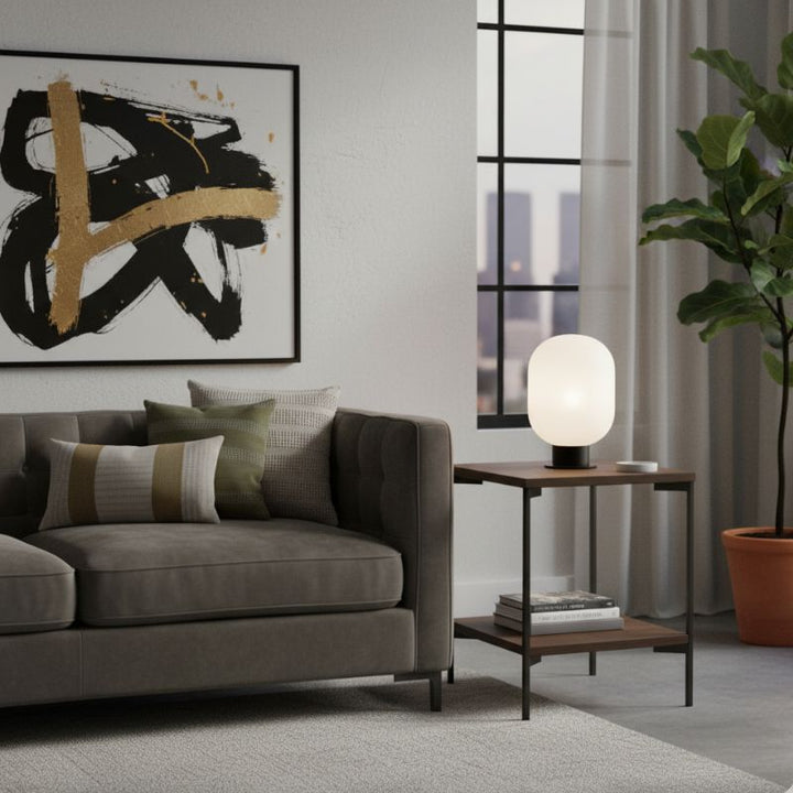 Lámpara de mesa, fabricada en metal, vidrio y pintura electrostática. Incluye bombillo LED. Ideal para espacios como estudios, salas o habitaciones. Nuestra promesa de entrega es de 15 días hábiles.