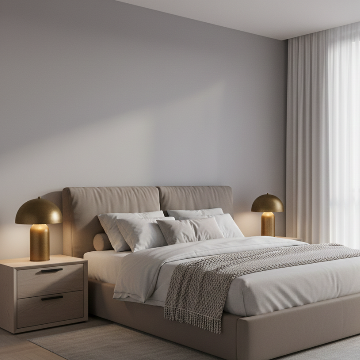 Lámpara de mesa fabricada en metal y pintura electrostática. Incluye bombillos LED. Ideal para espacios como habitaciones, salas o estudios. Nuestra promesa de entrega es de 5 días hábiles. Disponible en acabado bronce.