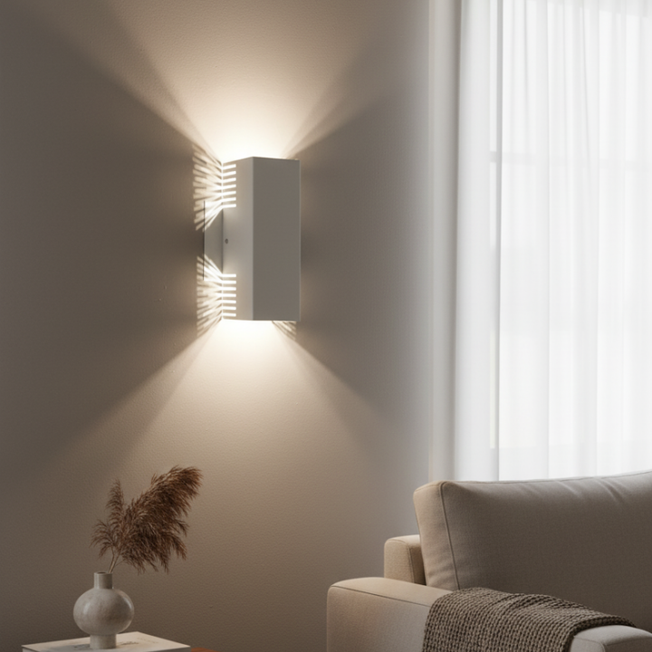Lámpara de pared, fabricada en metal y pintura electrostática. LED integrado en temperatura cálida. Ideal para espacios como salas o habitaciones. Nuestra promesa de entrega es de 5 días hábiles. Disponible en acabado blanco.