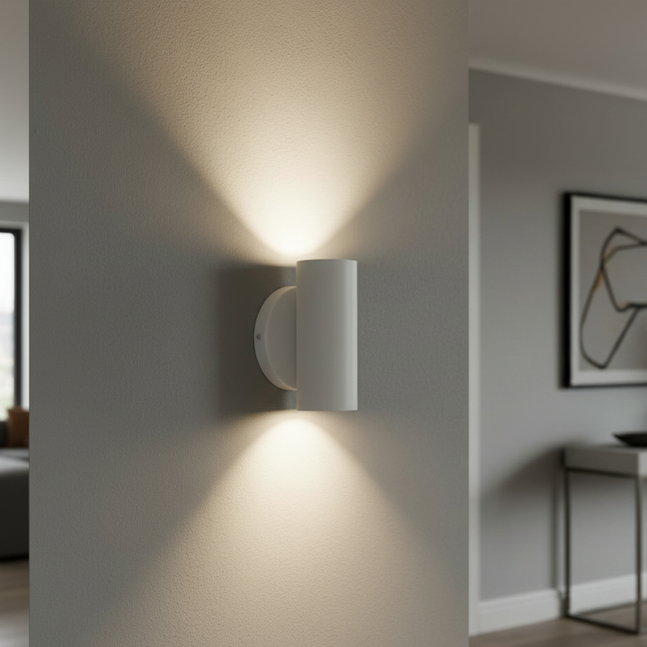 El aplique de pared en color blanco ofrece un estilo limpio y moderno que se adapta fácilmente a cualquier ambiente. Su estructura metálica con forma cilíndrica proyecta luz hacia arriba y hacia abajo, creando un efecto visual elegante que resalta la arquitectura del espacio. Ideal para pasillos, salas, dormitorios o fachadas interiores, este diseño proporciona una iluminación suave y equilibrada. Entrega: en 5 días hábiles.
