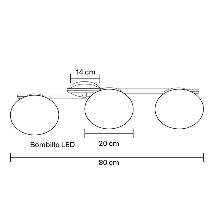 Lámpara de plafón, fabricada en metal, vidrio y pintura electrostática. Incluye bombillos LED. Ideal para espacios como salas, comedores o habitaciones. Nuestra promesa de entrega es de 15 días hábiles.